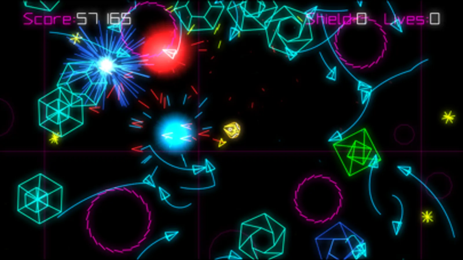 In this multidirectional shoot 'em up, players navigate through different game modes by avoiding enemies and destroying targets. Includes online leaderboards, replays, unlockable ships, and game controller support.