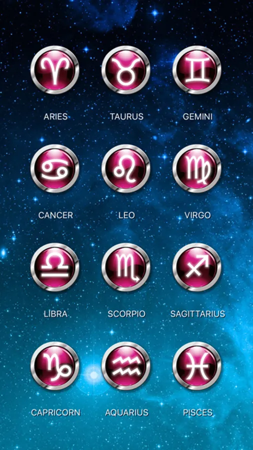 Aries, Taurus, Gemini, Cancer, Leo, Virgo, Libra, Scorpio, Sagittarius, Capricorn, Aquarius, Pisces.