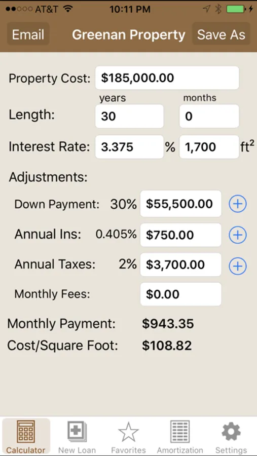 - Ability to specify length of loan in months as well as years, allow up to three decimal places for the interest rate field, switch to loan calculator view when a saved loan is selected, price per square foot calculation, down payment and annual tax calculation based on percent or manual entry, and much more to come.