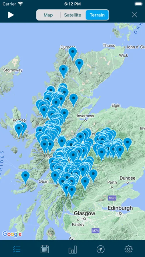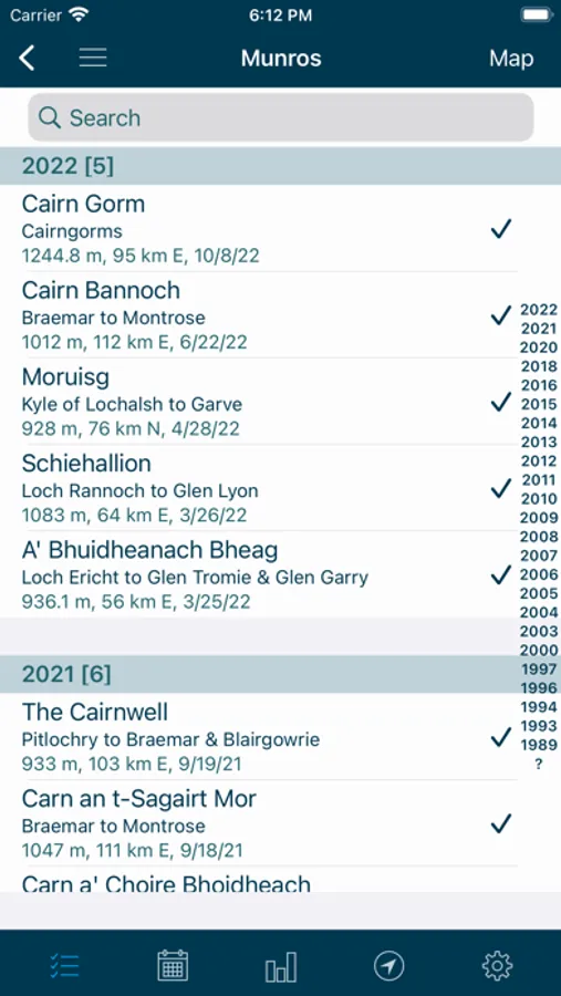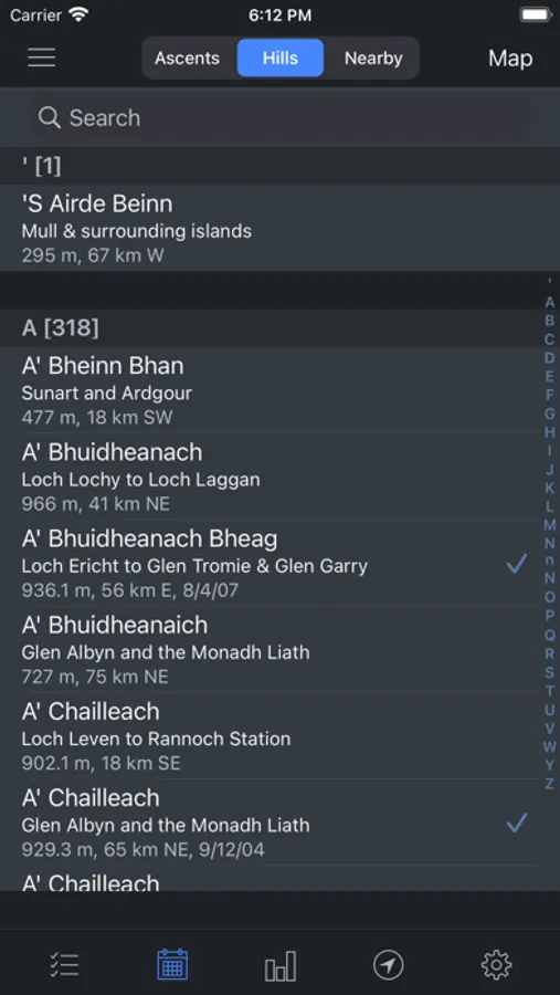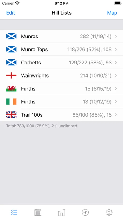 - Choose the lists you would like to complete, and view counts per list (hills completed, total and percentage)