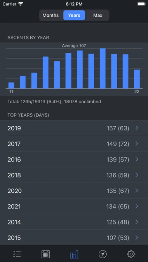 - See statistics of your ascents, e.g. a breakdown per month or by year, plus a list of most frequently climbed hills