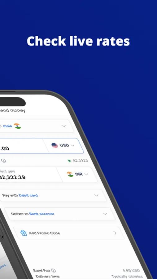 ● Transfer money in as fast as minutes to 200+ countries around the world.
