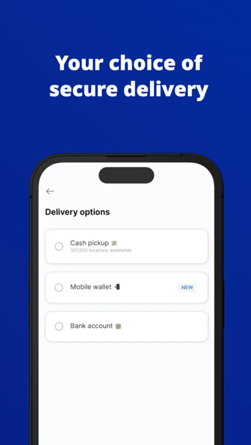 ● Choose from multiple payout methods for your recipient to receive your money transfer, including bank deposit, cash pickup, and mobile wallet