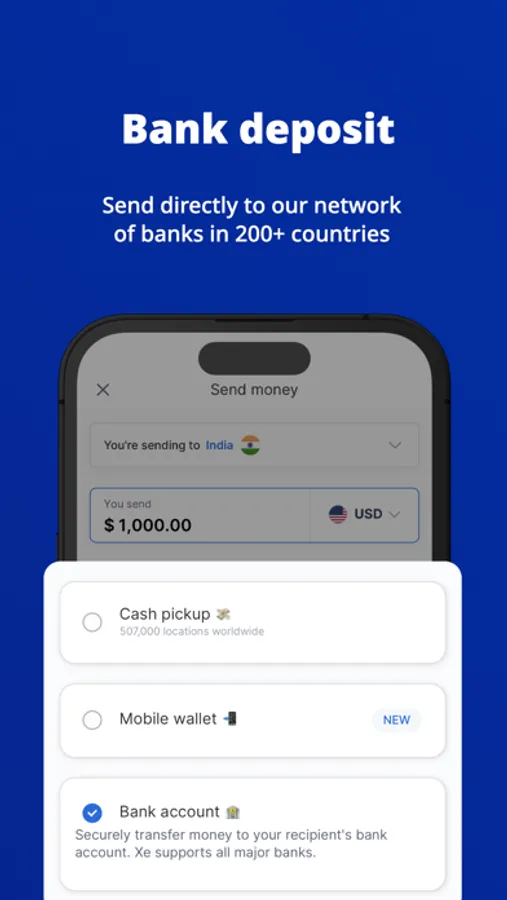 Whether you're looking to send money internationally, check exchange rates, or stay up to date with the currency markets, the Xe money transfer app has you covered. With our app, you can send money internationally with ease, track your money transfer every step of the way, and choose from flexible payment and payout methods.