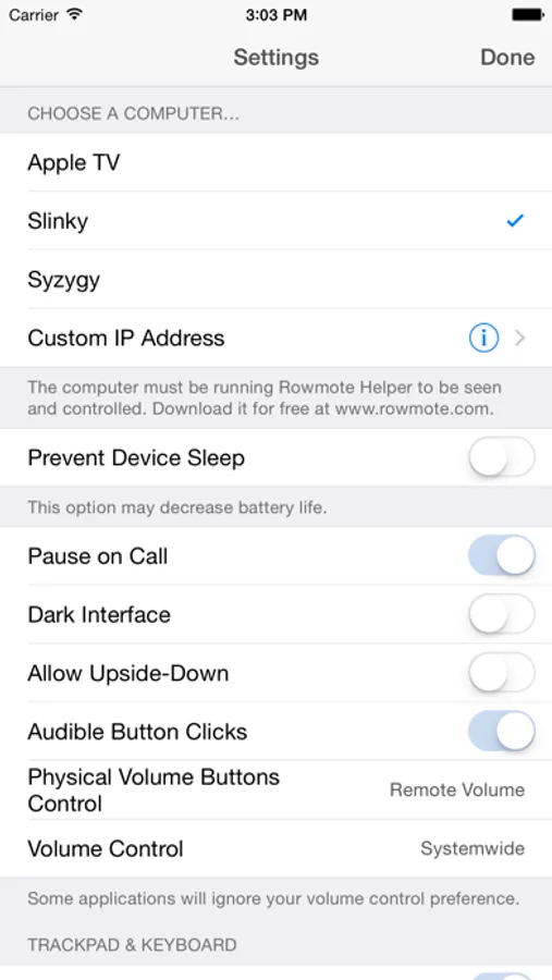 • The free Rowmote Helper program must be running on the Mac. Download at www.rowmote.com.