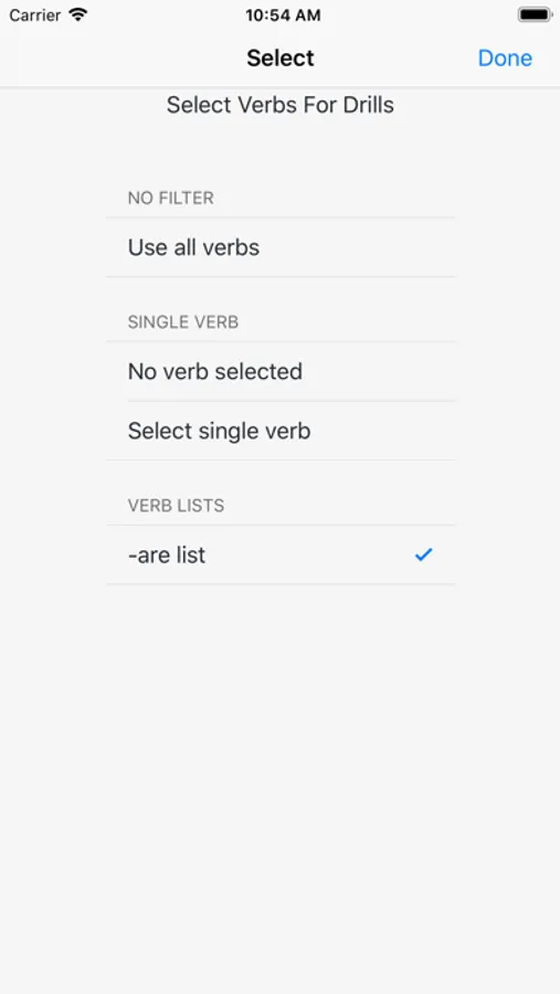 - Learn specific verbs. You can select one verb or create a verb list of verbs and have Verbi present you with drills on the verb you selected or verbs from your verbs list. You can create as many verb lists as you need, and have as many verbs on any list as you need.