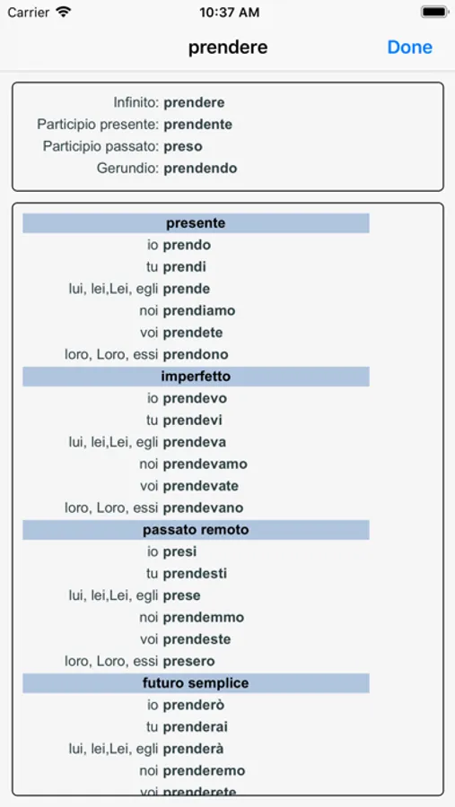 Every Italian verb has 89 forms that a student of Italian has to learn. Verbi is the tool to do just that.