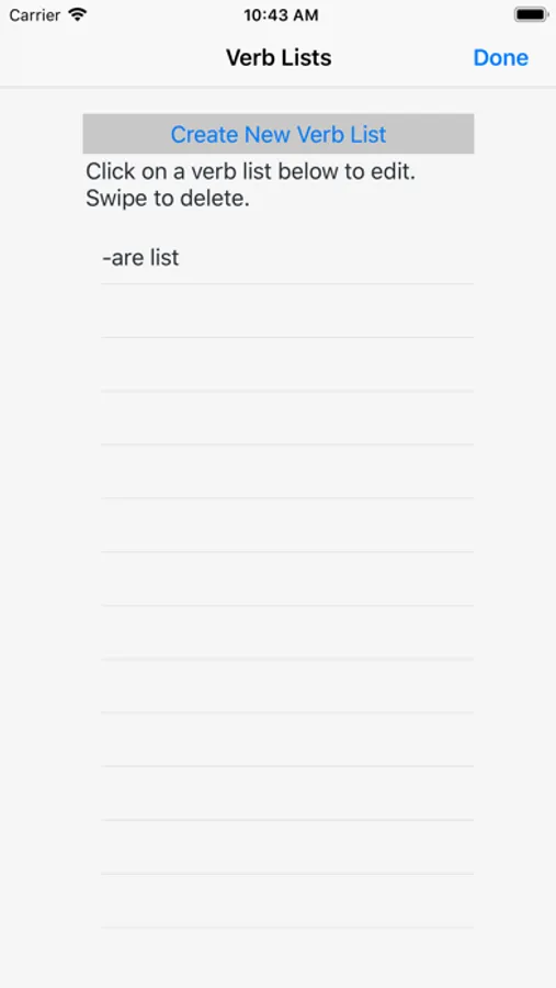- Create and save any number of verb lists. This allows you to study a small set of verbs as a unit. When you use a verb list, only the verbs from that list will be used for quizzing.