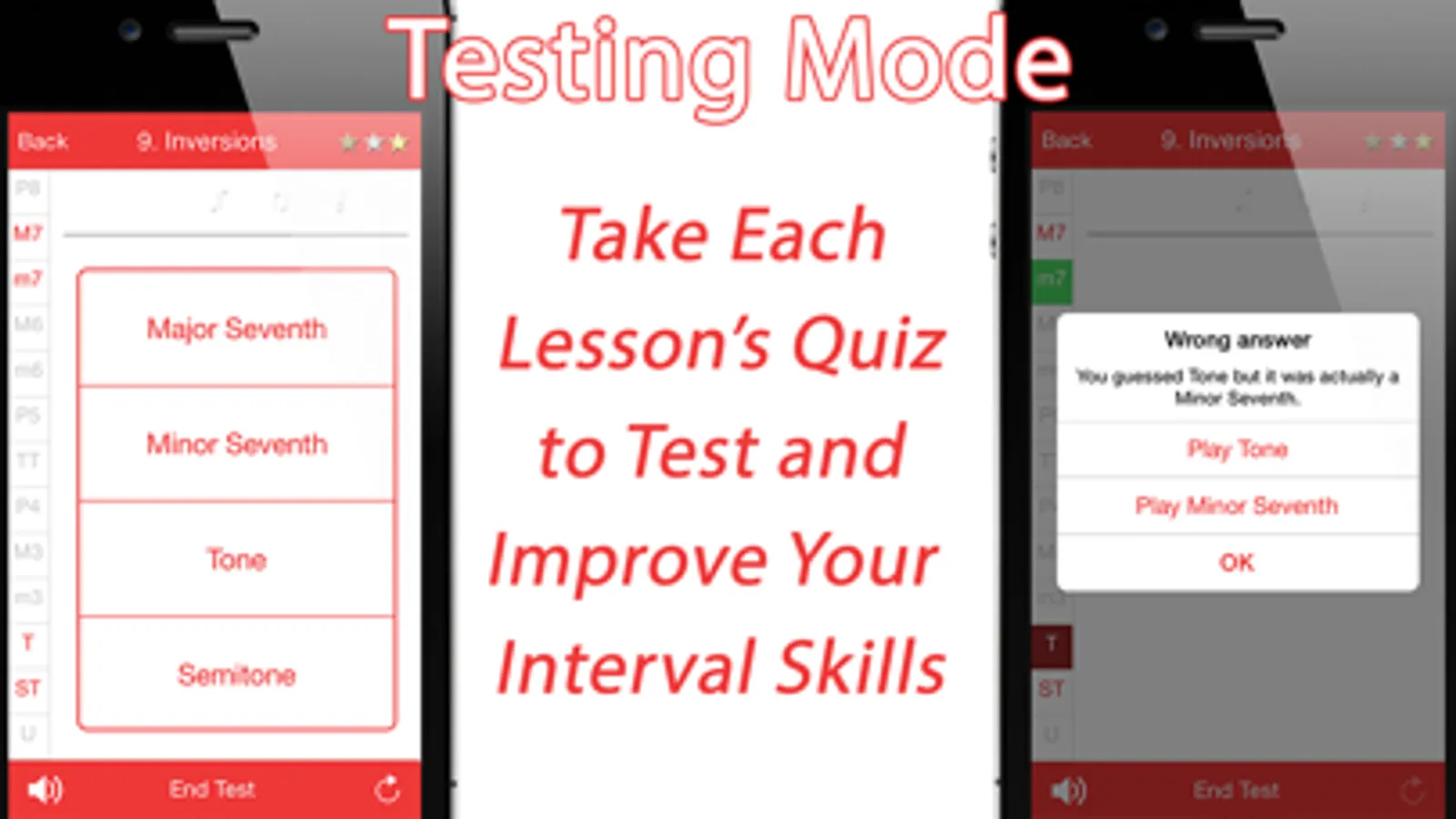 • Testing Mode – Check your progress by trying to get the highest score in testing mode. If you distinguish intervals correctly, you'll unlock new levels and new challenges in training.