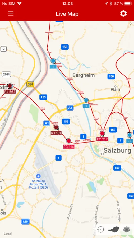 The train radar shows all ÖBB-trains running in the Austrian railway network on a map. Not only do you see all long distance trains but also regional trains. By clicking on a train you get information on its real time data – location and punctuality – and ist next stops. The viewing of trains can be limited to train types – for instance railjet or suburban trains – or to certain trains.