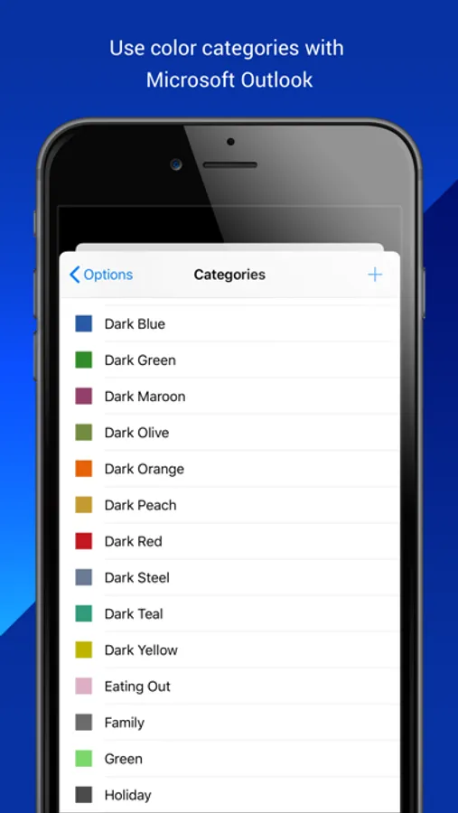 - Full category support, including downloading your list of categories and colors from your Exchange Server.