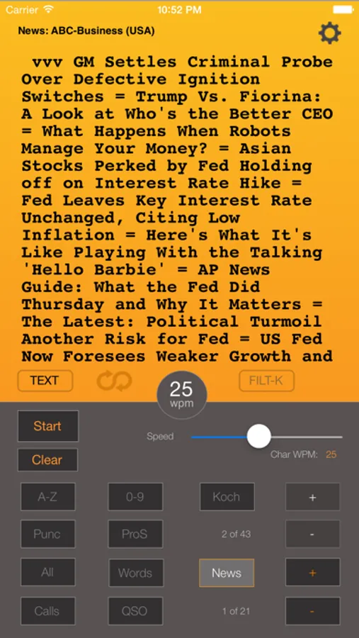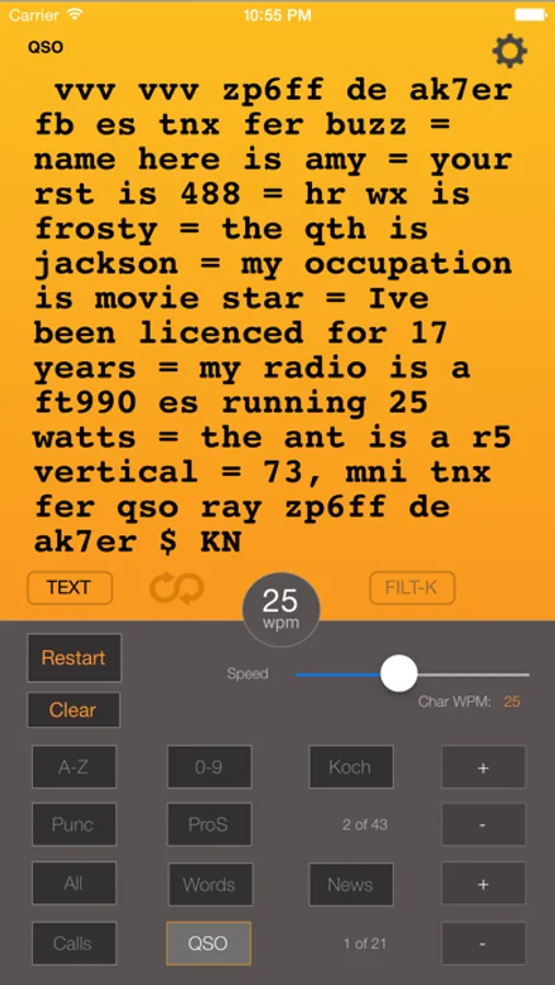 Text Filter - Filter out characters from the News feeds or QSOs that you are not yet familiar with so you can start practicing with real text even if you don't yet know the whole morse character set.