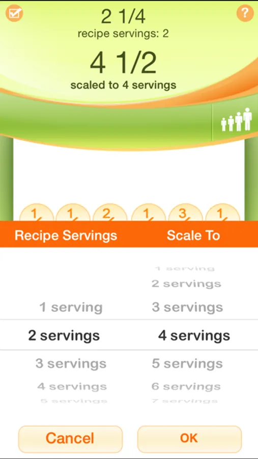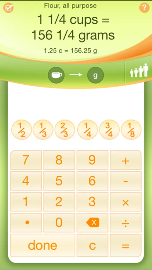 4.Enter amounts and view results in standard cooking fractions (1/2, 1/3, etc )