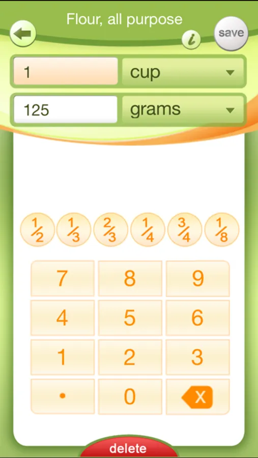 2.It allows you to quickly enter and save your own ingredient weight for more precise conversions. In many cases, you can enter the values right off the product label, using fractions!