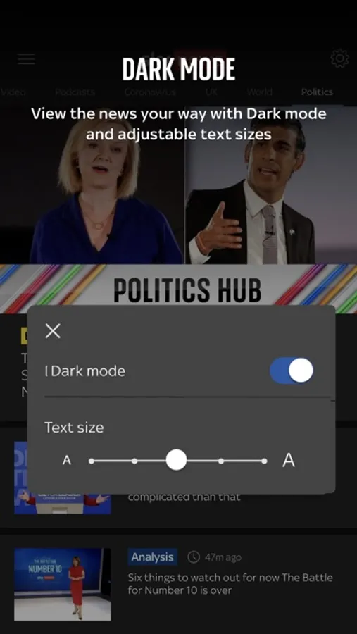 • Dark mode - change your preferences any time from the settings cog
