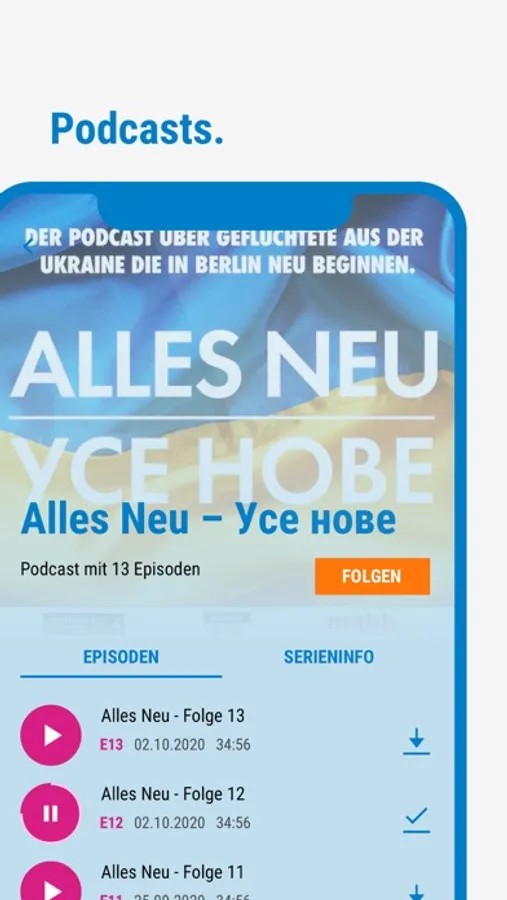 3. Podcast-Feeds: Höre rs2 Podcasts, auch offline und unterwegs.
