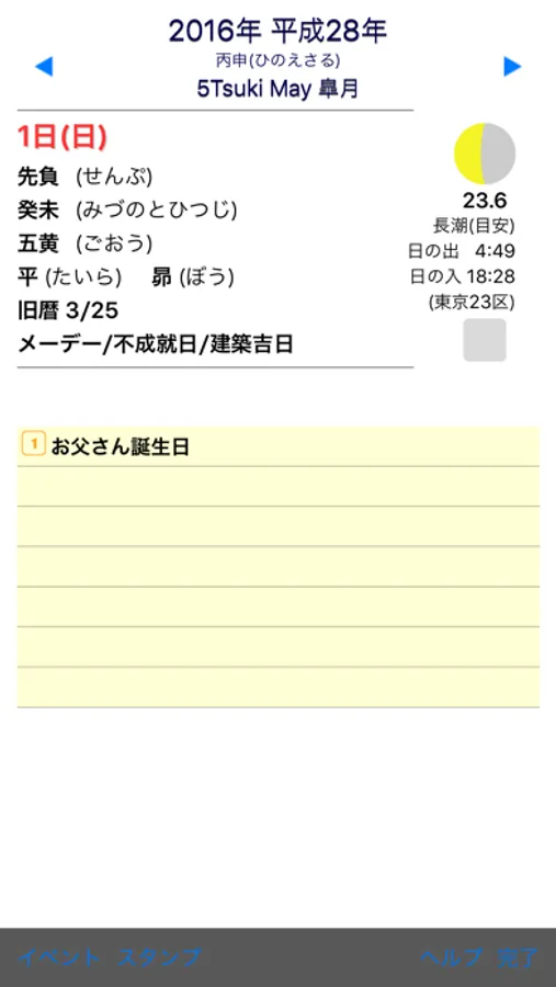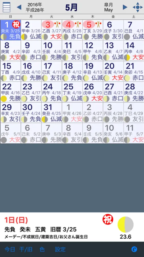 - Save the monthly calendar image to your Photo Albums. (day/rokuyo/moon/stamp only)