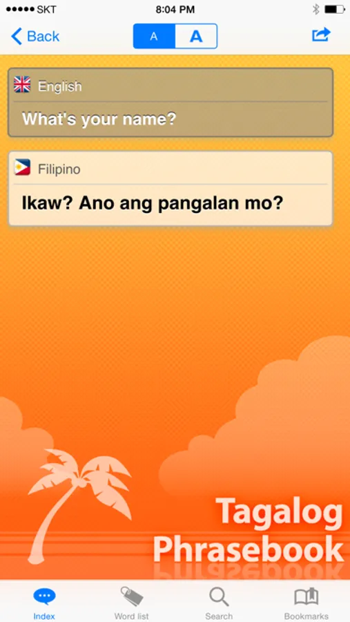 Thousands of pre-translated phrases under dozens of useful topics. Ideal for people traveling to the Philippines or for Filipino traveling to Japan or English speaking countries.