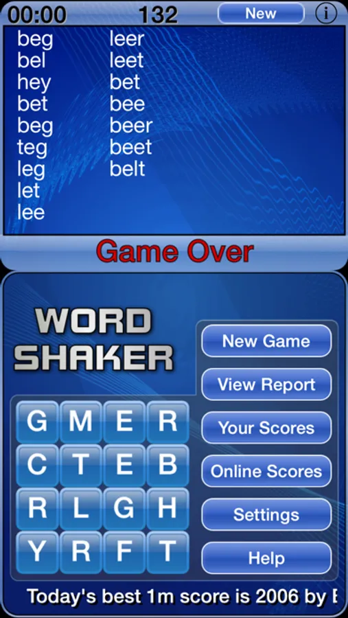 - Highest scoring words toplist, personal and global