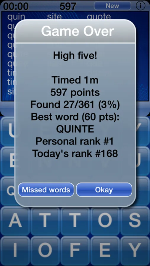 - Full report of found and missed words after a game