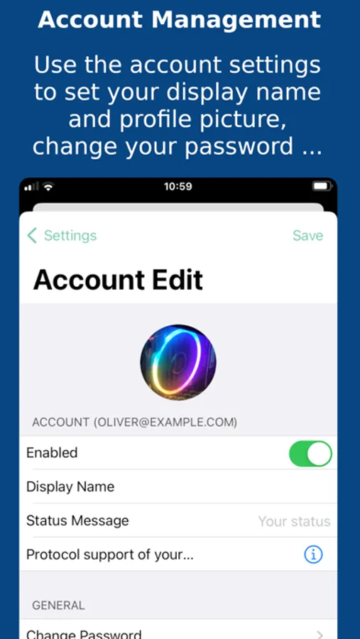 - Will work with corporate XMPP servers that require VPN
