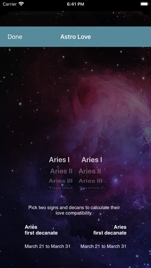 Includes astrological predictions for future days for all zodiac signs (3 decanates):