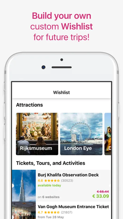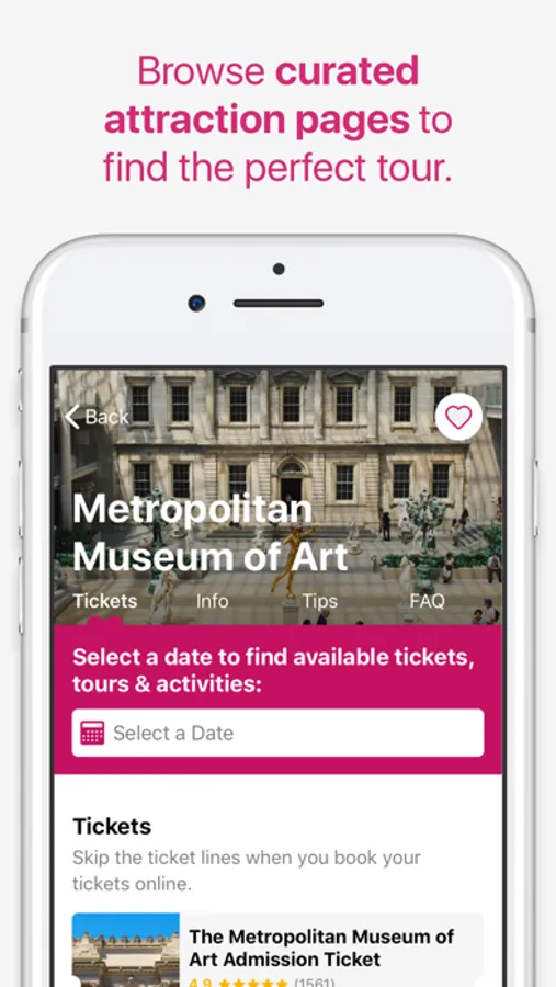 • Browse through the complete selection of tickets, tours, and experiences for your next destination.