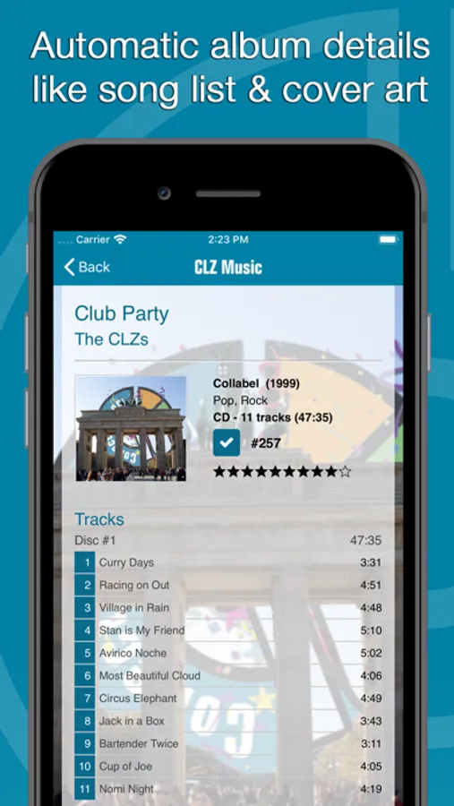 Automatically download cover images, track lists and full album details, like artist, title, label, release date, running times, genre, etc..