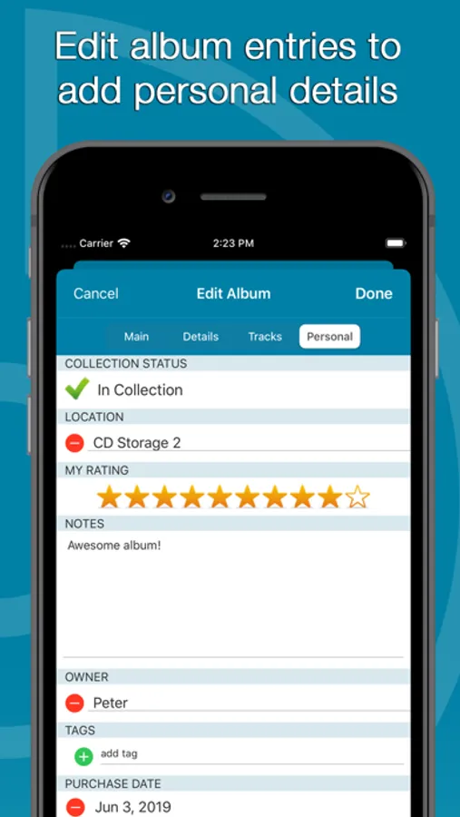 Organize the CDs and LPs that you own and keep track of the albums that are still on your wish list.