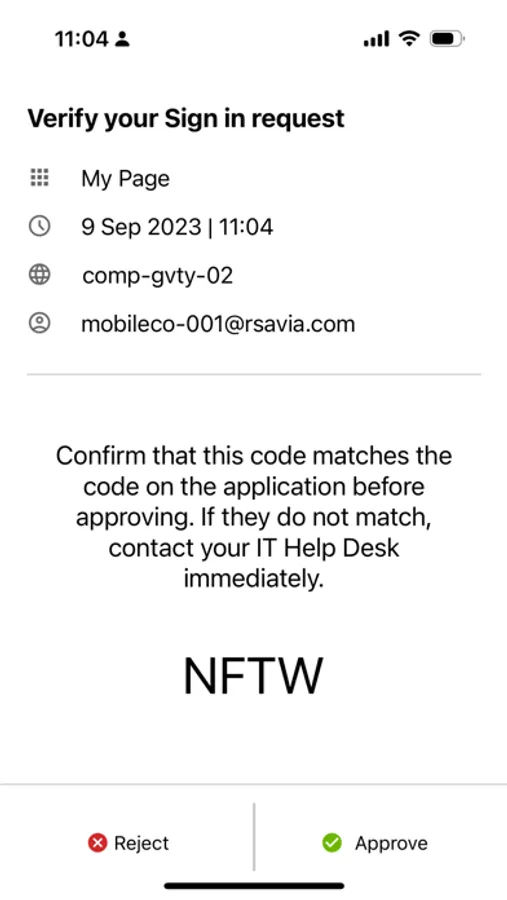 • Approve (push notifications) prompts you to authenticate by tapping a button on your registered device.