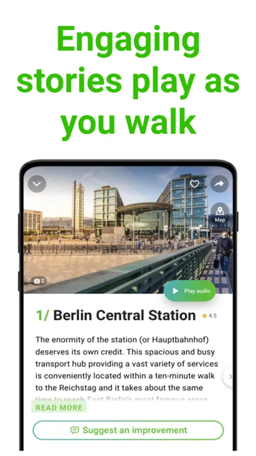 The personal travel planner app is your audio guide to the world that lets you conveniently listen to a travel guide with interesting narratives from local guides that play automatically when you reach an interesting sight. Just let your phone talk to you and enjoy the scenery!