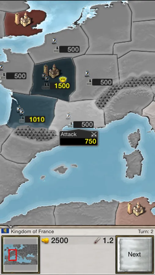 Age of Conquest is a medieval risk-like turn-based strategy game where you take the reins of a budding empire and struggle against fellow empires for control of Europe. In one game, up to 30+ players vie for supremacy, but only one can be victorious. Every game you win pushes up your score, until you don't just dominate Europe, but also your fellow players. Then all will be in your shadow and not just peasants, but even kings will worship you! All this can be yours, but only if you triumph.