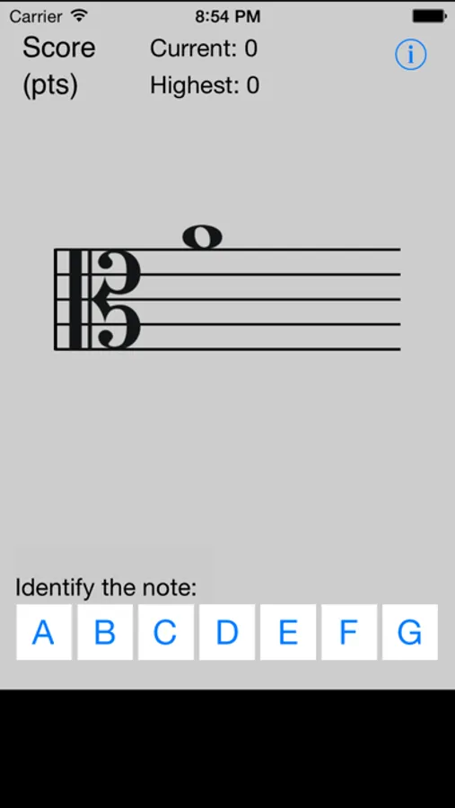 To use Tenor Tutor, simply identify the note by pressing the correct A, B, C, D, E, F, or G button. If you are right, you get one point and advance to the next note! If you are wrong, you lose a point, but you get to try again.