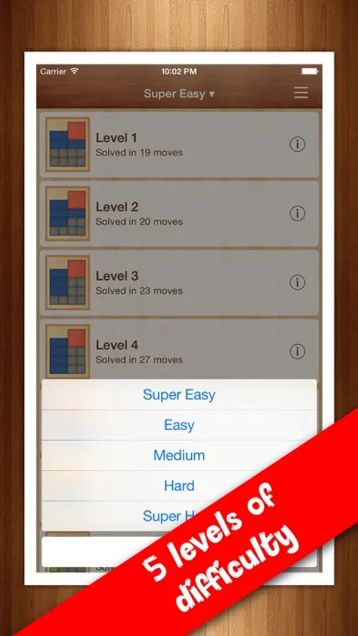 You can play in 5 different difficulties: Super easy, Easy, Medium, Hard and Super hard.
