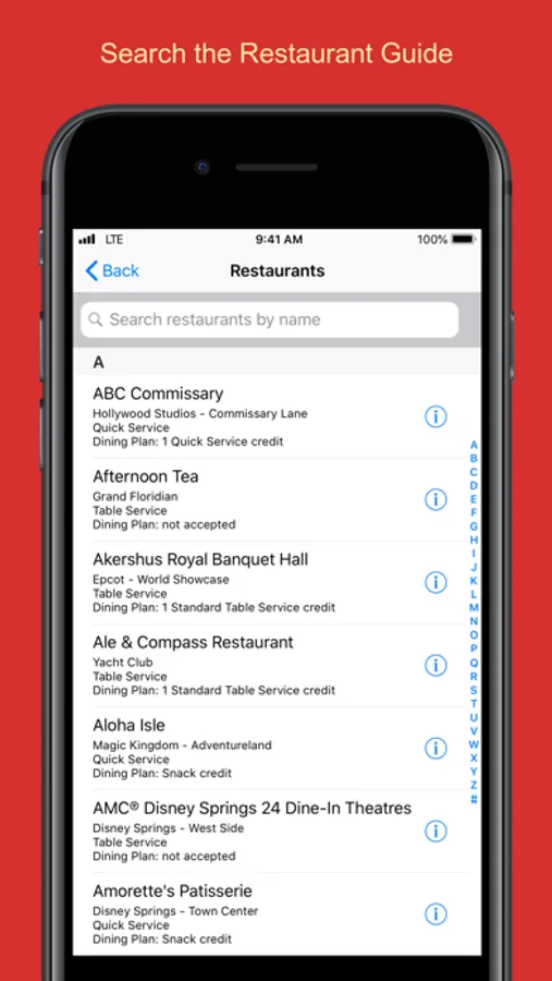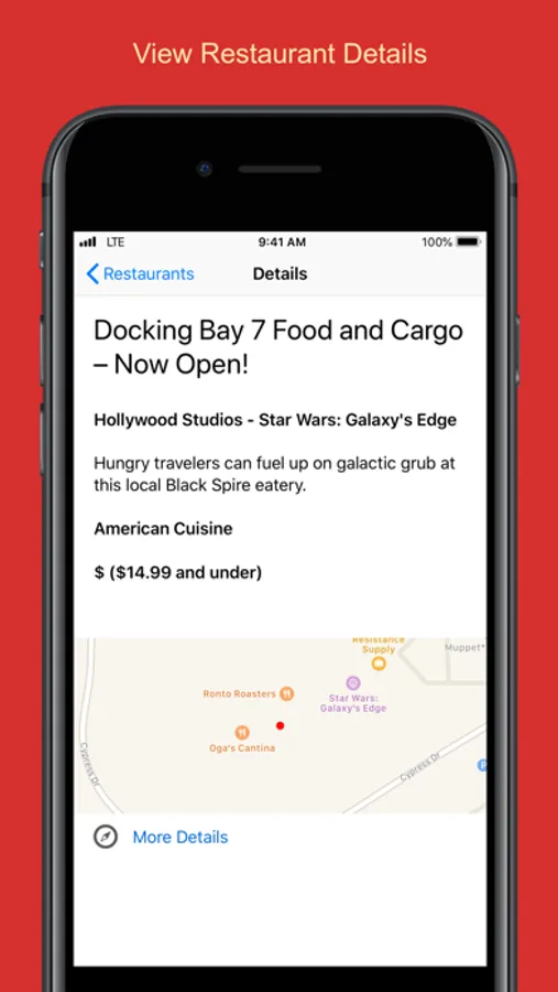 *** All the latest restaurant information is automatically downloaded from the cloud for offline access. Checkout Jaleo, Toledo, Takumi-Tei, and Topolino's Terrace (Riviera Resort's Signature Dining restaurant! You can even find information for Docking Bay 7, Olga's Cantina, and the Milk Stand at Galaxy's Edge! ***