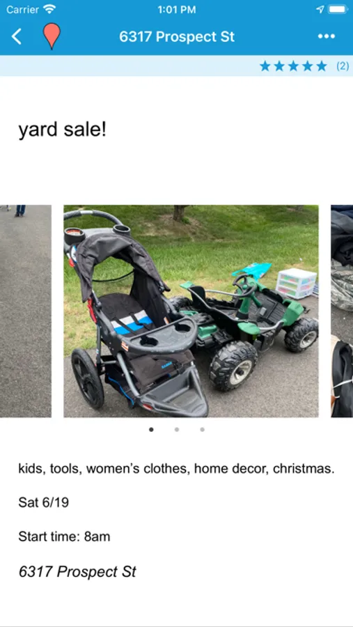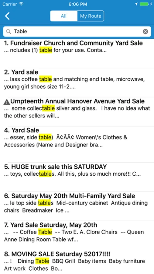 Yard Sale Treasure Map is an app for planning your treasure-hunting adventure. View your local yard sales in map or list format, view sale details and photos, get directions, and take advantage of advanced organizational and route planning features.