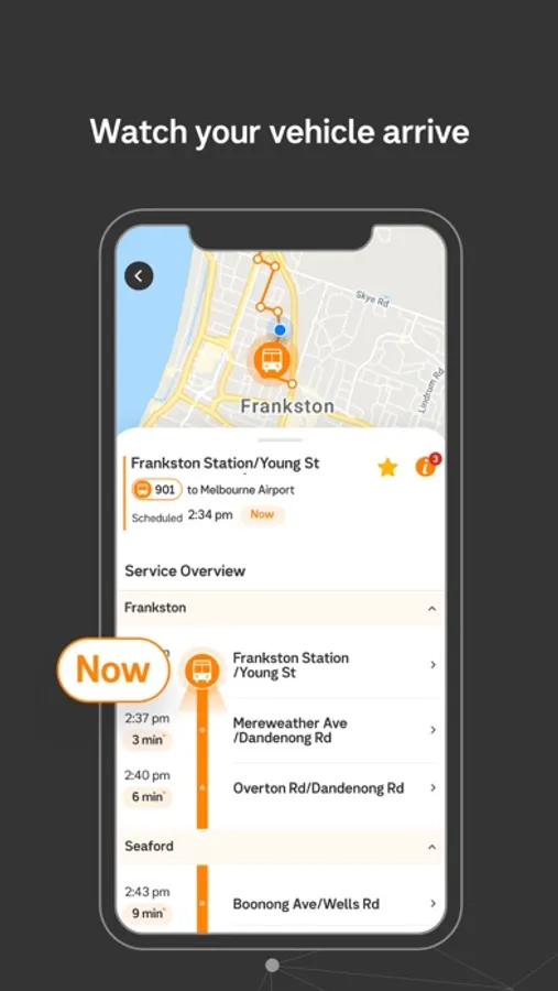 - Live tracking: Watch your service arrive at any stop (available for bus and train only)