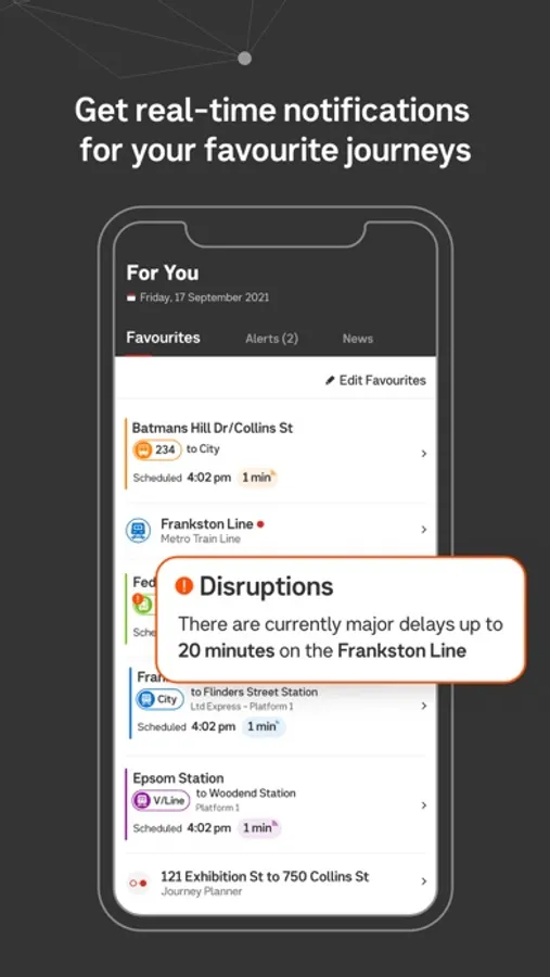 - Alerts: Stay informed of disruptions to your journey, news and myki