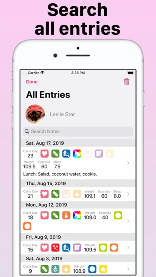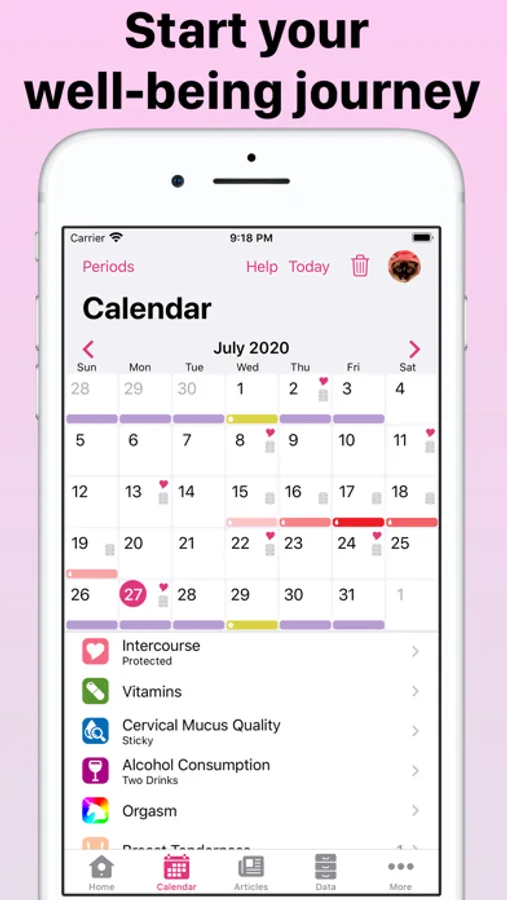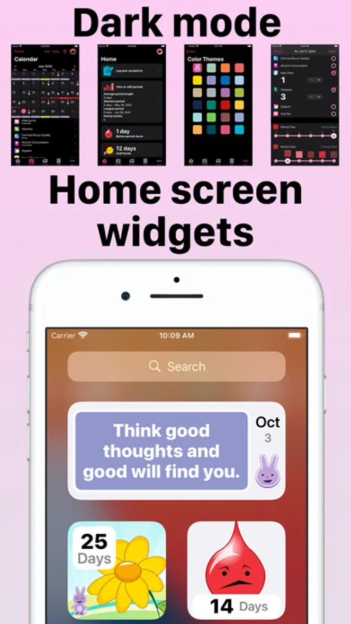 Includes support for Apple HealthKit by synchronizing your menstruation, spotting, cervical mucus quality, basal body temperature, weight, and intercourse information. Full support for dark mode, iOS 14 widgets and daily affirmations.