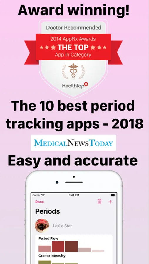 Rated #1 in the "Top 10 Women's Health Apps for iOS" on Healthtap.com. Over 1.97 million Period Plus users and counting.