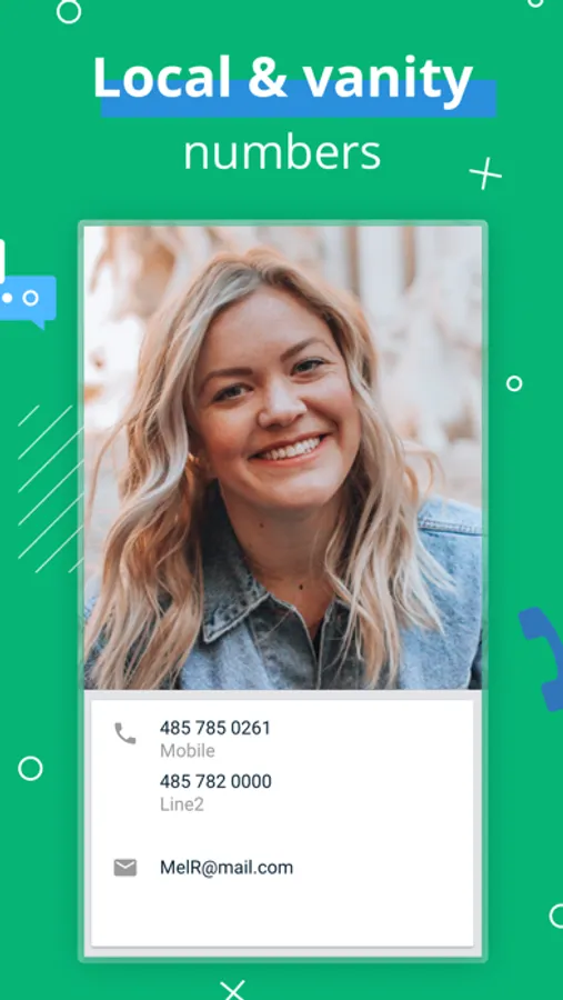 - Our phone call app lets you create localized and vanity phone numbers to help you connect.