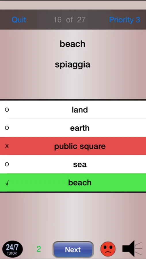 24/7 Italian Vocabulary has basic language vocabulary in the categories of Family, Friends, Travel, Home, Office, School, Countryside, Around Town, Money, Food, Drink, Clothing, Weather, Time, Date, Pronouns, Thoughts, Feelings, Adjectives, Opposites, Colors, Descriptive Words, Numbers and more.