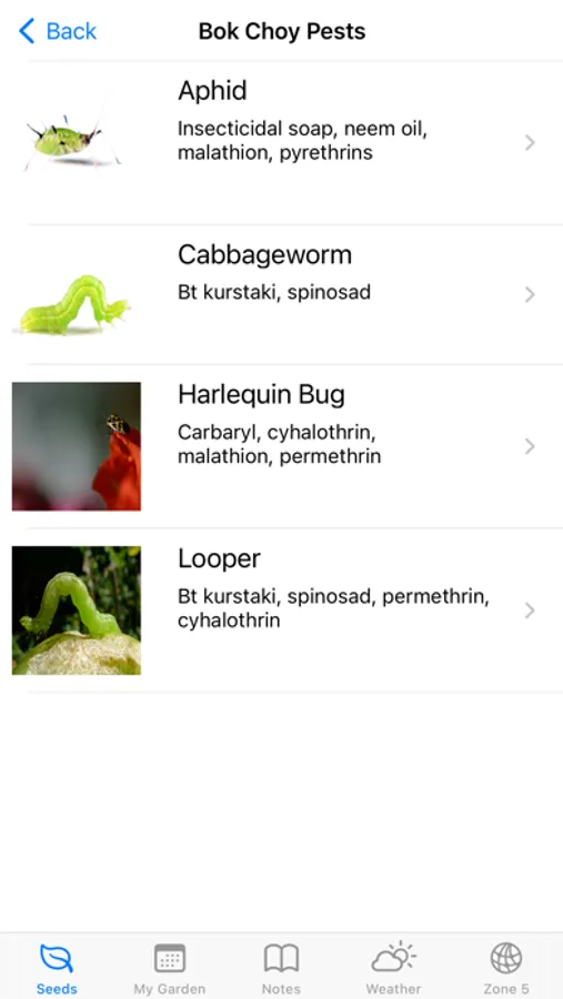 * Known pests and remedies for the various vegetables, fruits, and herbs