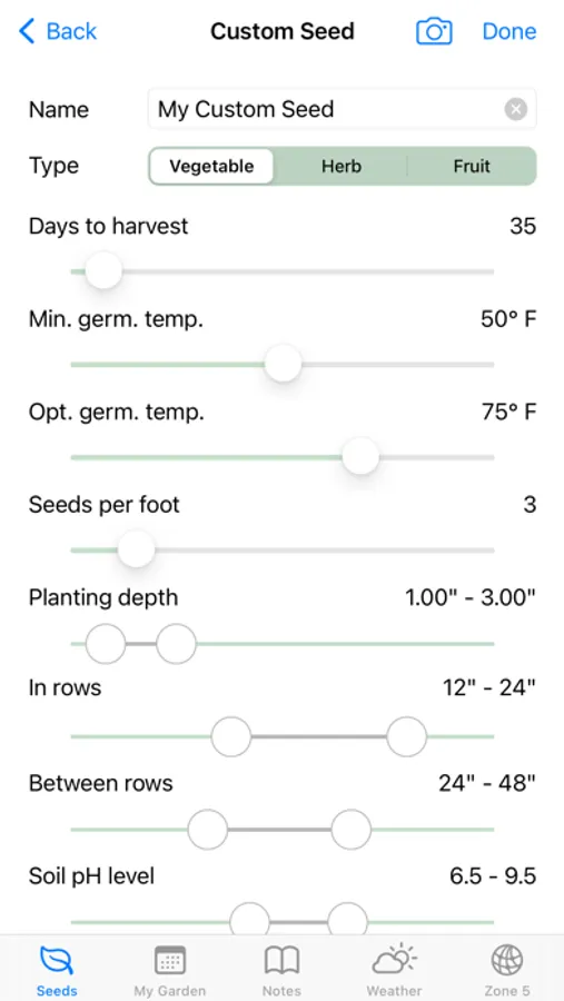 * My Garden allows you to plant as seed indoors or outdoors or as plant by specifying the age of the plant