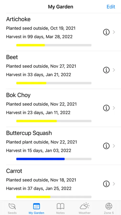 * My Garden allows you to track when you planted and estimate the remaining time before harvest