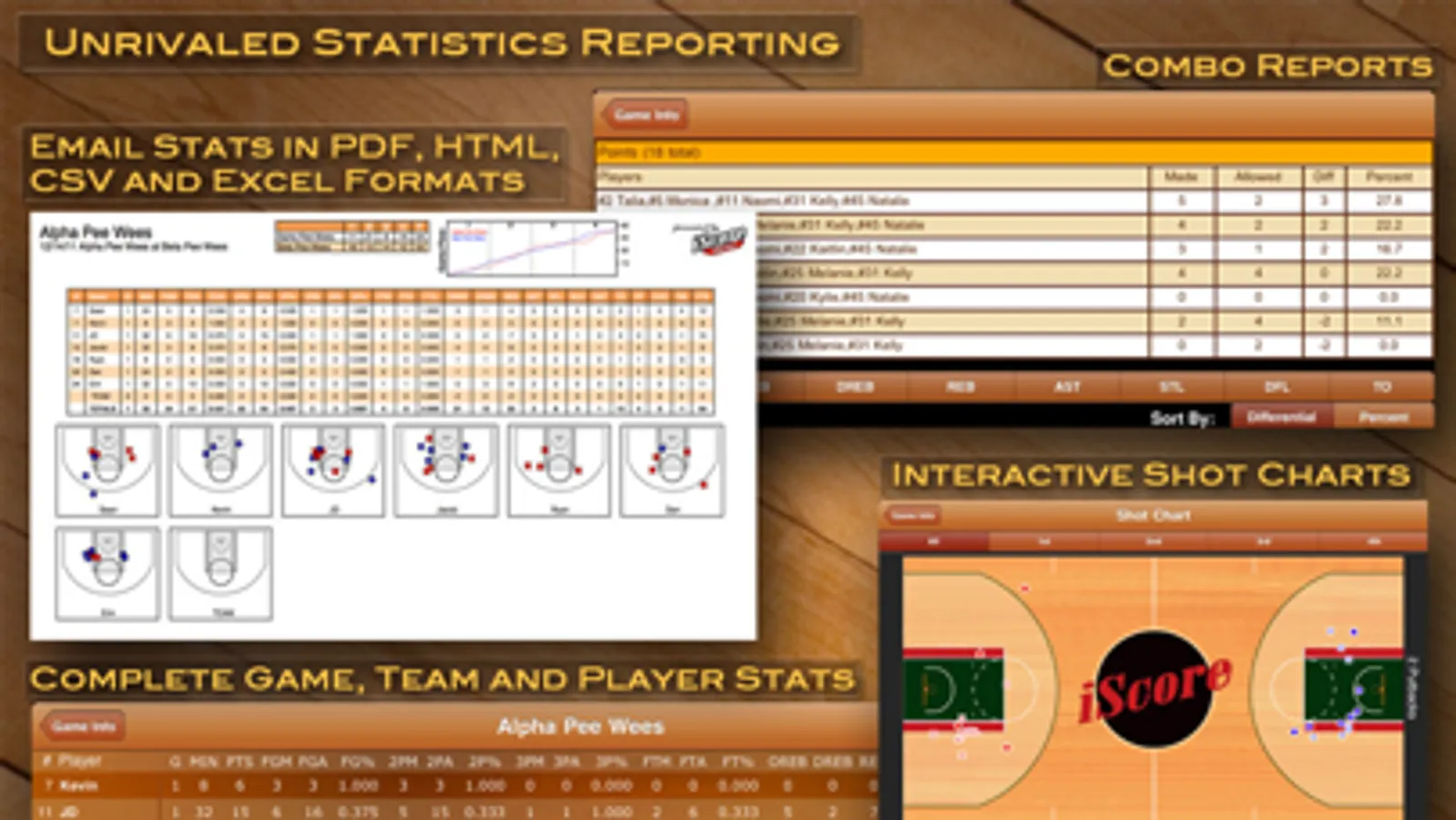 Following the iScore tradition of "score what you see", you will be able to score live basketball games and immediately produce statistics that every coach, player, and team parent loves to see. Track as much or as little detail of the game as you would like.