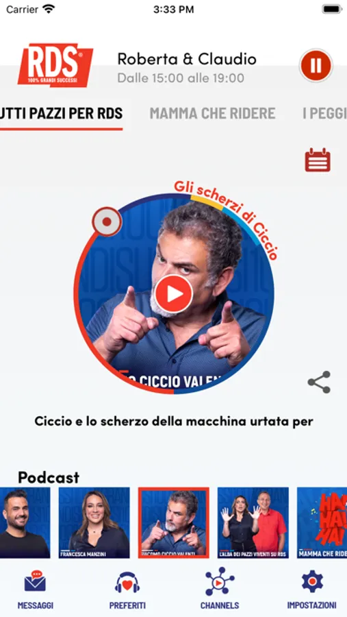 - podcast, per riascoltare i momenti migliori di Tutti Pazzi per RDS, l'oroscopo di Branko e i 100 secondi