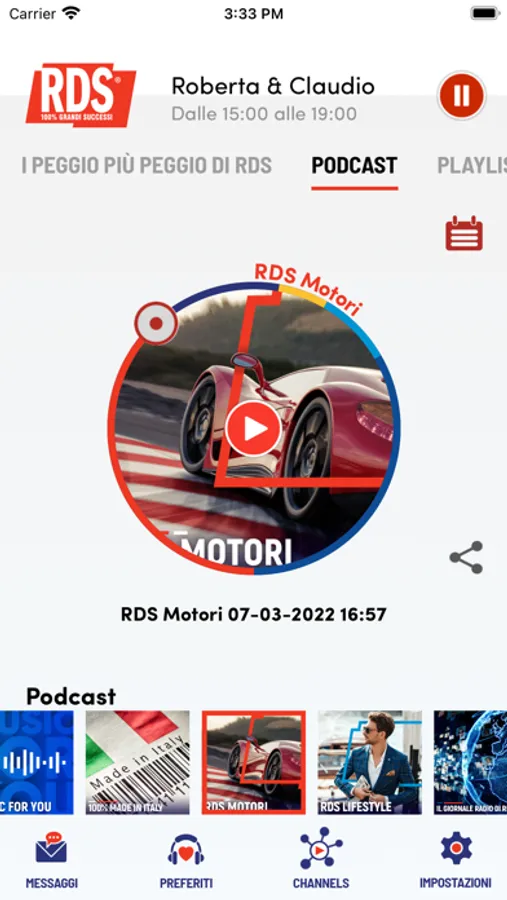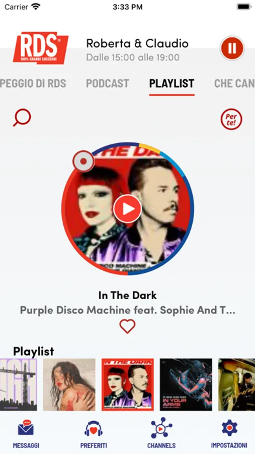 - playlist, per pre-ascoltare i grandi successi di RDS