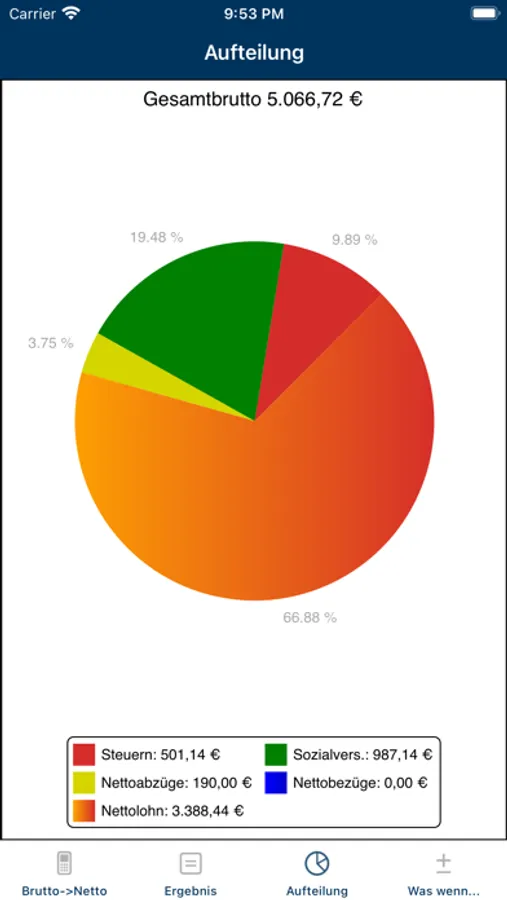Ebenso werden die Sozialversicherungsabgaben berechnet und angezeigt.