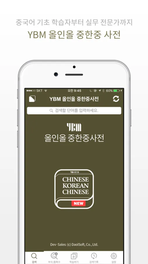 The YBM All in All Chinese-Korean and Korean-Chinese Dictionary for iPhone/iPad/iPod touch is a dictionary that combines all headwords from "YBM All in All Chinese-Korean Dictionary" and "YBM All in All Korean-Chinese Dictionary" published by YBMsisa.com, into one application.